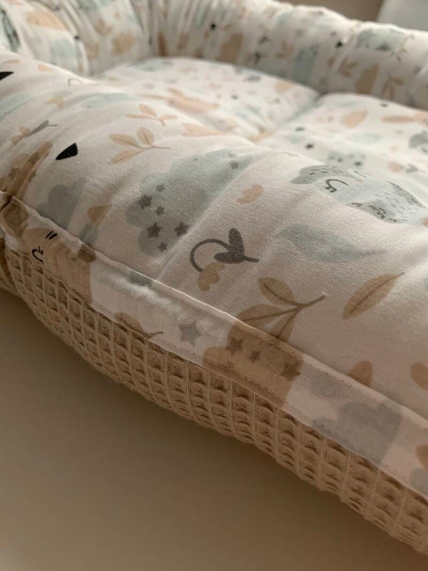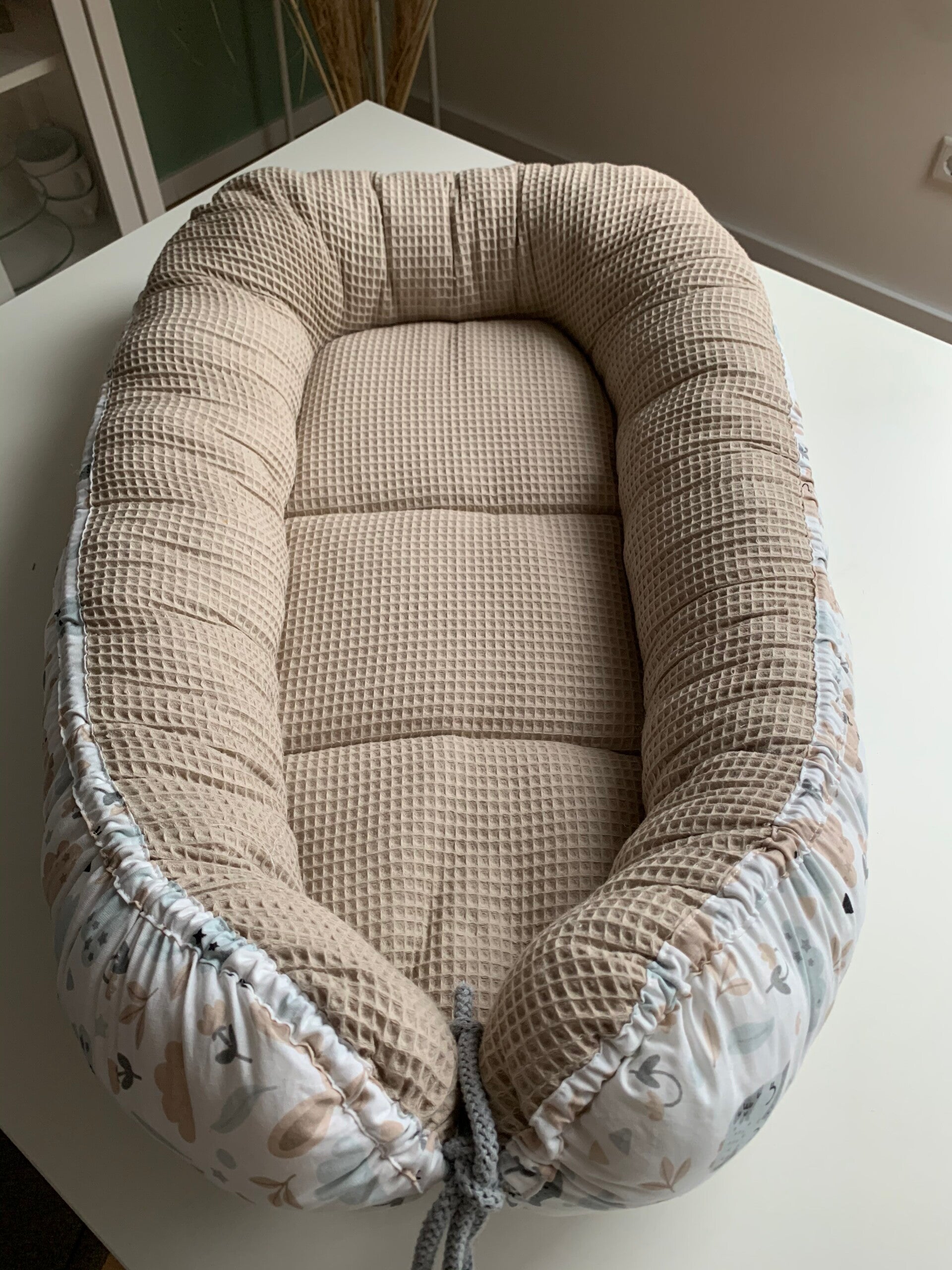 Das Babynestchen ist von beiden Seiten nutzbar.Durch die Kordel kann die Größe angepasst werden