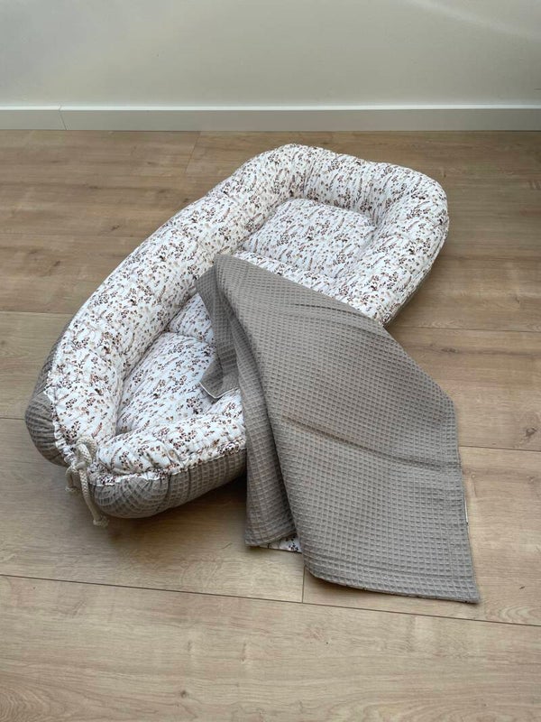 Das Babynestchen ist von beiden Seiten nutzbar.Durch die Kordel kann die Größe angepasst werden
