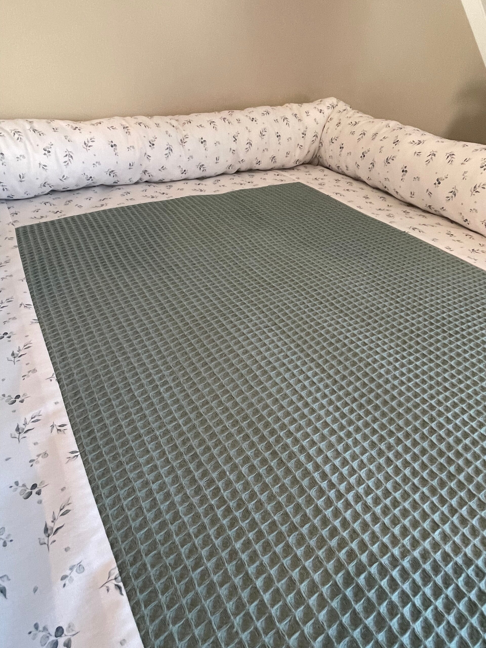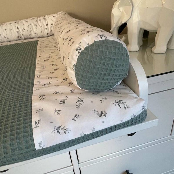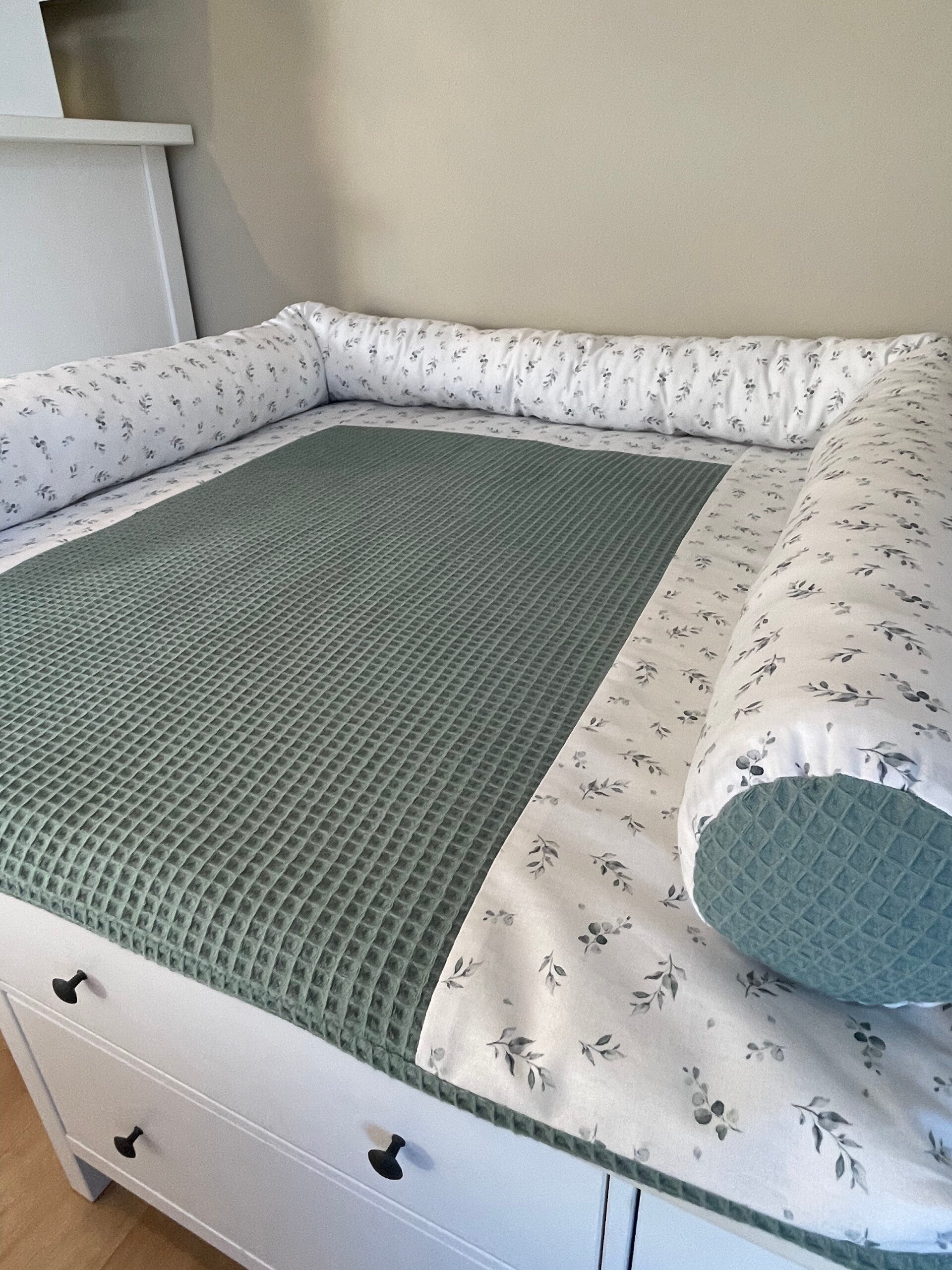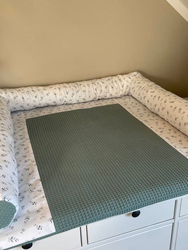 Liebevoll gefertigte Wickelauflage in Wafflepiqué und hochwertigem Baumwollstoff.