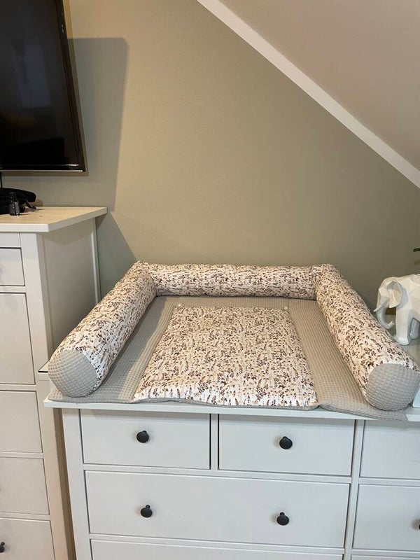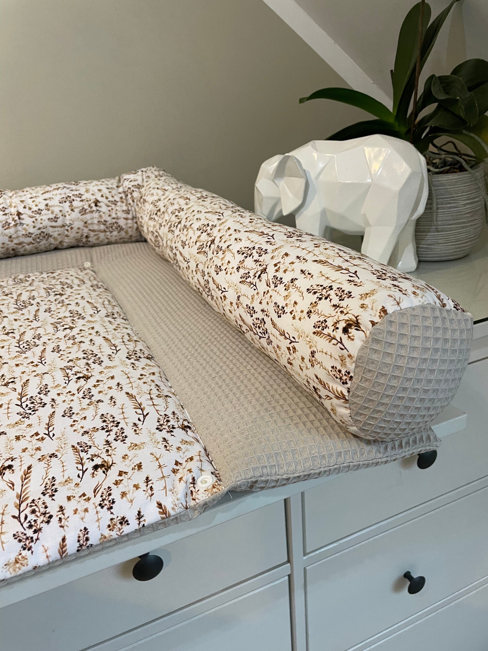 Liebevoll gefertigte Wickelauflage in Wafflepiqué und hochwertigem Baumwollstoff.